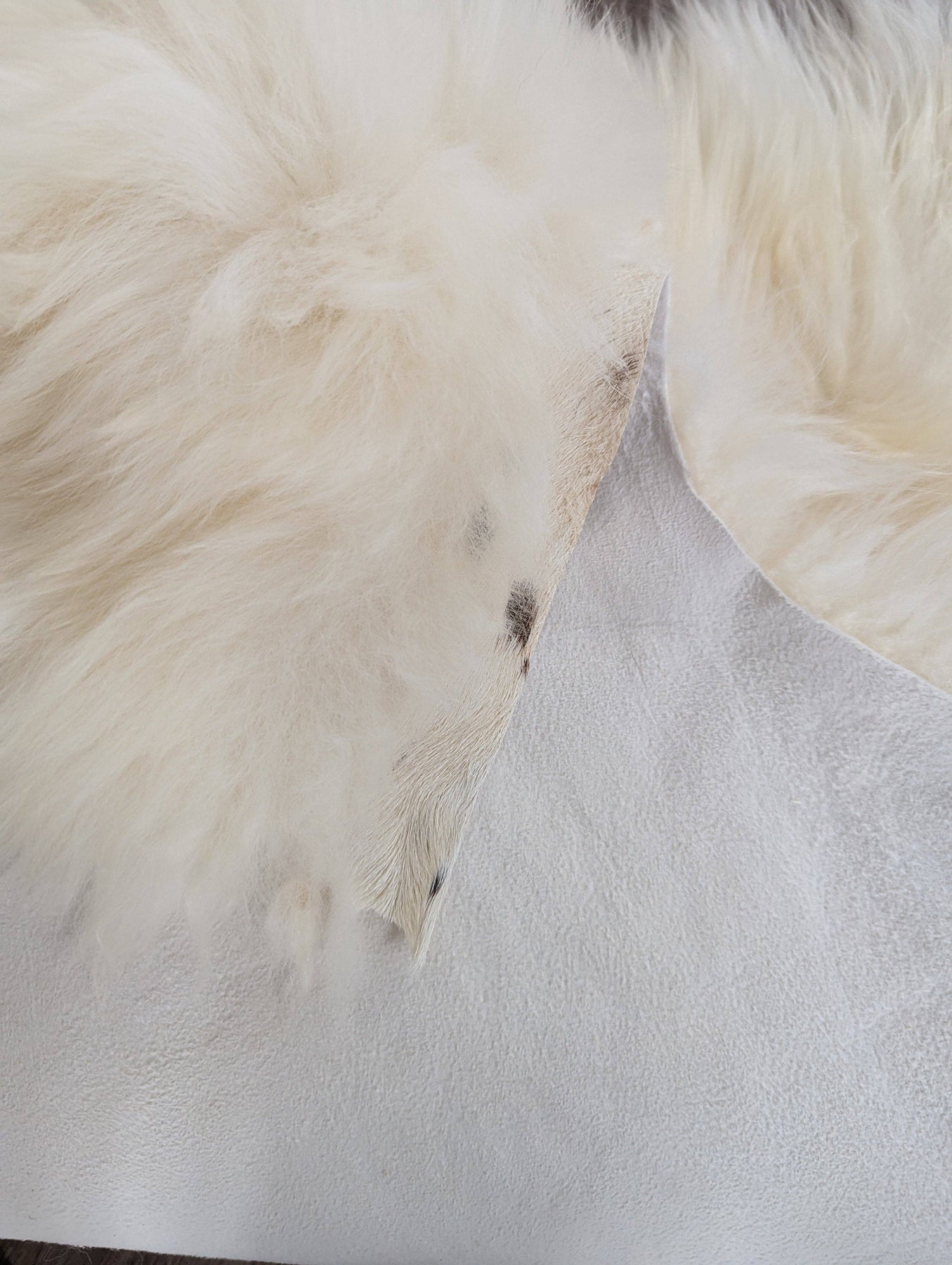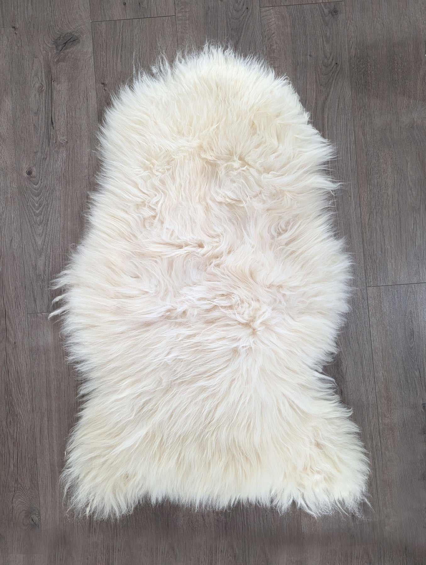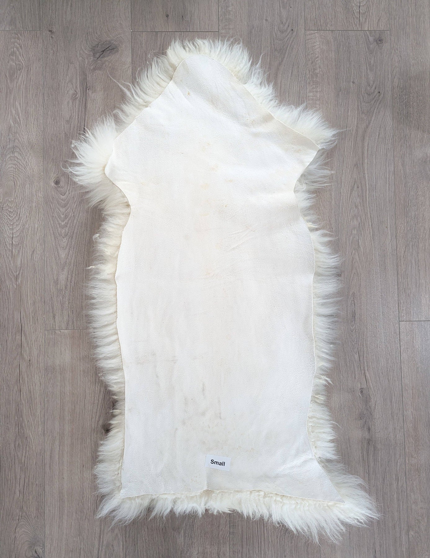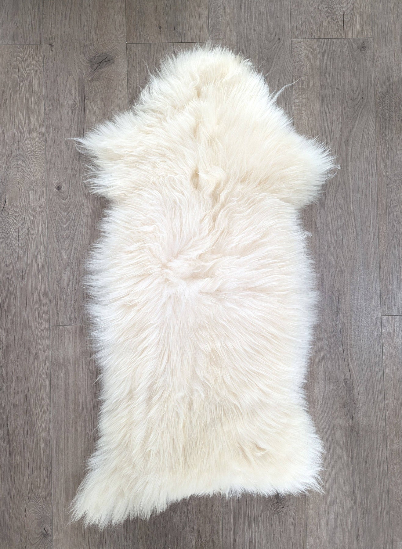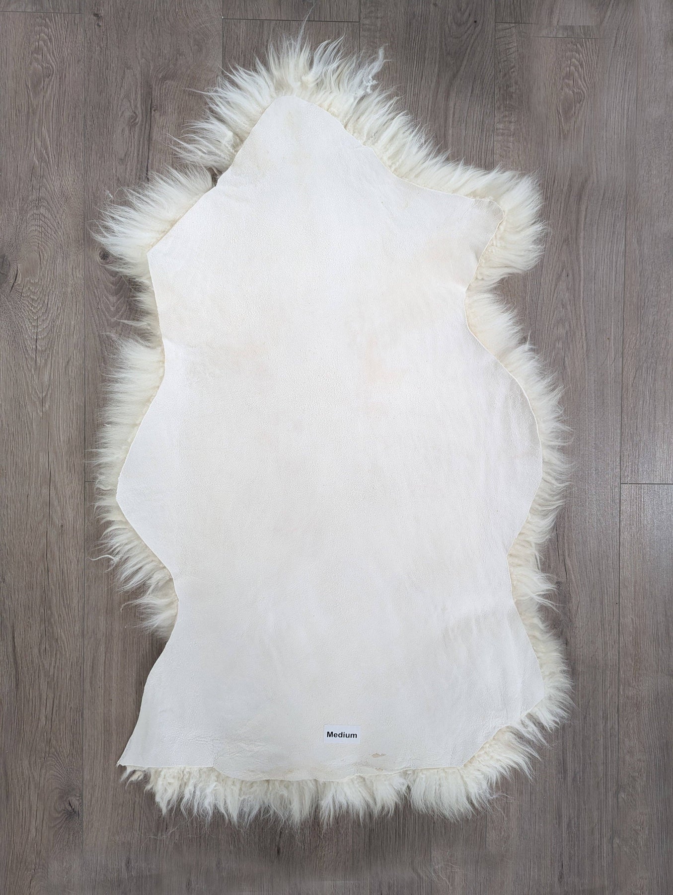 Beautiful natural sheepskin rugs made from British skins 🇬🇧 Grade A sheepskins with no stitches, repairs or mends on the back. Silky soft long dense wool pile. Perfect for rugs, sofa throws, chair pads, dining benches and pets! Colour: Natural Size: S, M, L, XL, Super (availability of sizes may vary from time to time) Natural colour sheepskins, but each sheep is unique! So sheepskins may vary from skin to skin. Colouring may vary from natural tones from whiter ivory to creamier naturals. Wool texture, length and density may vary too as well as shaping. The beautiful thing about these sheepskins is seeing the various tones and textures of each skin. Rare breed markings and coloured sheepskins also available. Natural doubles, quad, triples etc too. - Please message us. These are a natural product so size grading means the actual length and width may vary - please see chart image in pictures.