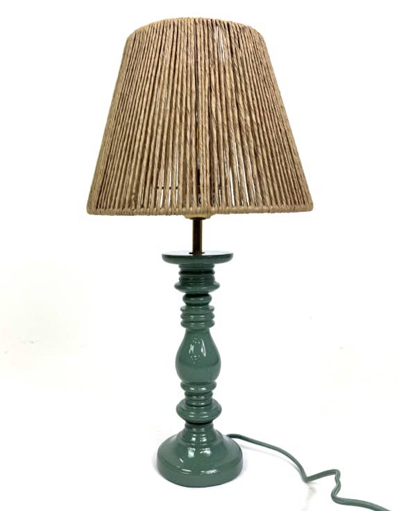 The Pale Green Table Lamp with Natural Ribbed Rope Shade is a stylish offering from Tge Emporium, Yeovil. This accent/desk lamp is ideal for adding a touch of classic European elegance to your space, while also offering a nod to vintage and retro design. Our team is dedicated to supplying high-quality home interiors, and this lamp is no exception. This lamp does more than just illuminate your space.